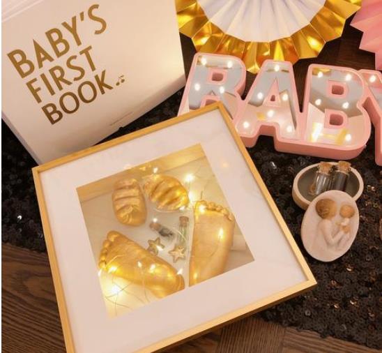 近两年来这种手足印泥相框可以说是非常热门的了,各大明星家庭都在疯狂安利,而且价格并不是很贵还很有留念意义,送一个给宝宝让他记住你一辈子哦。
