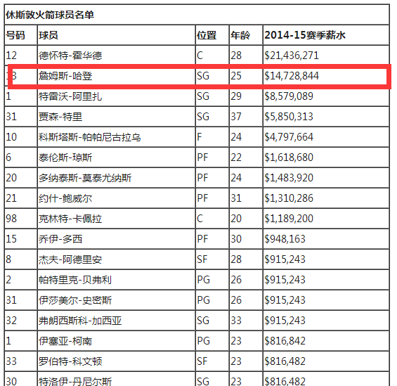 2015哈登在火箭年薪曝光图,曝哈登约会33岁名模真相揭秘